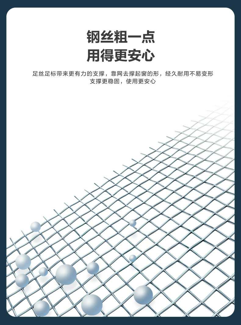 Product Features產(chǎn)品特點:金剛網(wǎng)自2008年在中國大規(guī)模生產(chǎn)和銷售,至今已有15年以上的生產(chǎn)經(jīng)驗,確保了產(chǎn)品的質(zhì)量與出廠品質(zhì)。該產(chǎn)品采用靜電粉末噴涂工藝,有效包裹絲徑,提升抗腐蝕能力,但需控制粉末厚度,過厚的粉末會使網(wǎng)孔呈圓形,影響透光率和通風(fēng)效果。產(chǎn)品的線徑越粗,防護性能越好,但網(wǎng)孔也會相應(yīng)變大,防蚊效果略有下降。為達到理想的防護效果,線徑需在0.8mm以上,線徑過細(xì)則防護性能不佳。