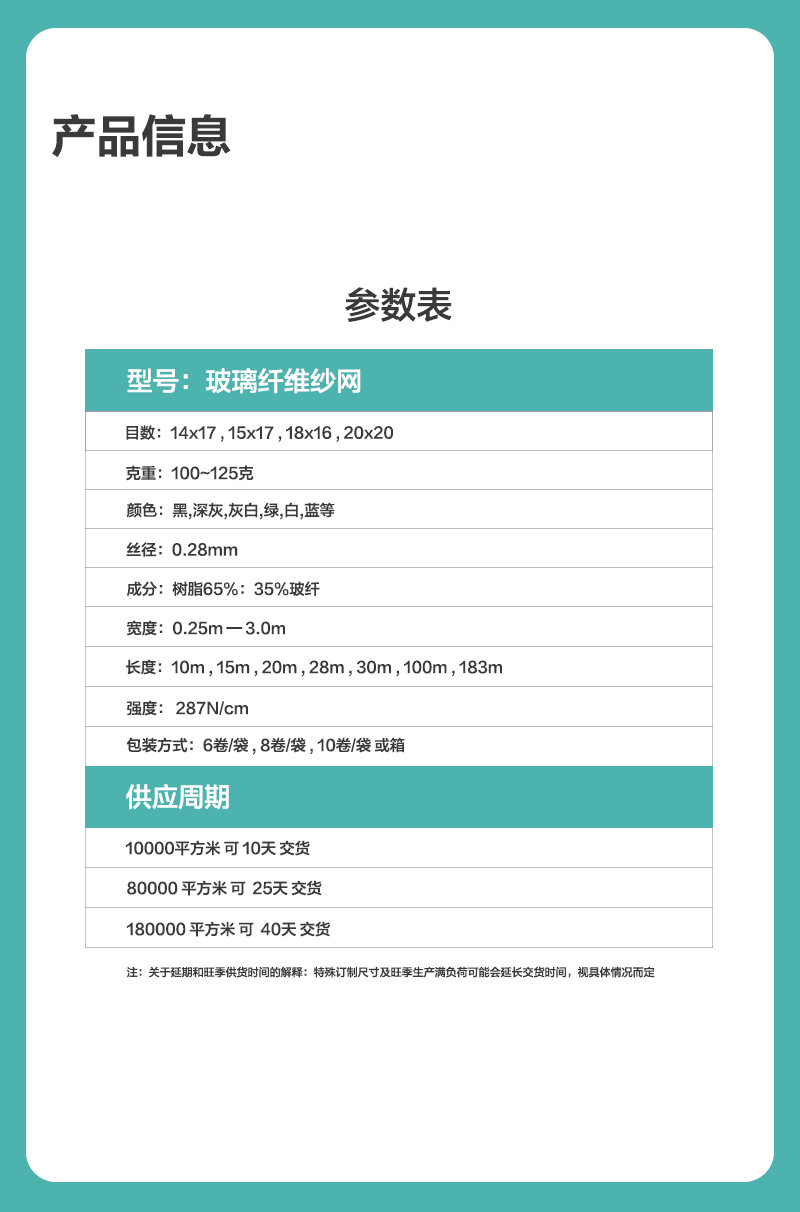 Fibre type纖維類型(材質): 玻璃纖維Fiberglass