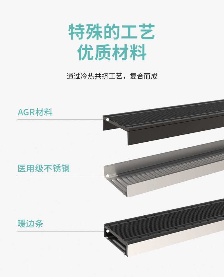 特點:AGR暖邊間隔條采用行內最先進的生產設備,成熟的合片工藝,產品實現零熱開膠;產品通過了最嚴格的TUR,羅森海姆等檢測;在具備低導熱特性的同時還有很高的強度,可以滿足不同場合。與鋁制間隔條在加工設備上具有良好的通用性。背面齒輪狀設計,增加了受力,使得其不易變形,便于折彎、打膠、合片。最大限度地減少玻璃和窗戶上的冷凝現象,避免間隔框的腐蝕損傷。能有效降低溫度應力,大幅降低玻璃自爆率。