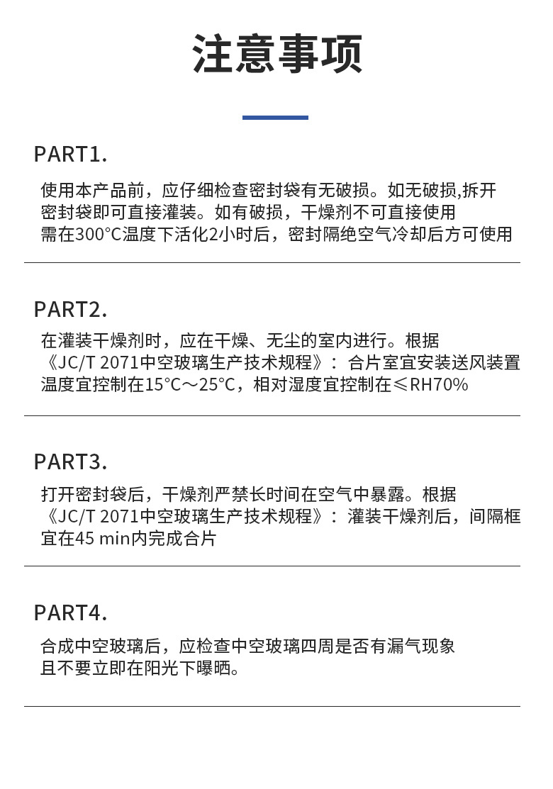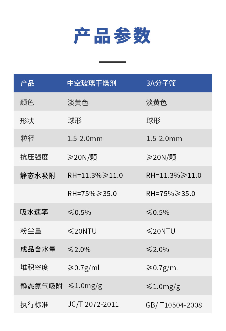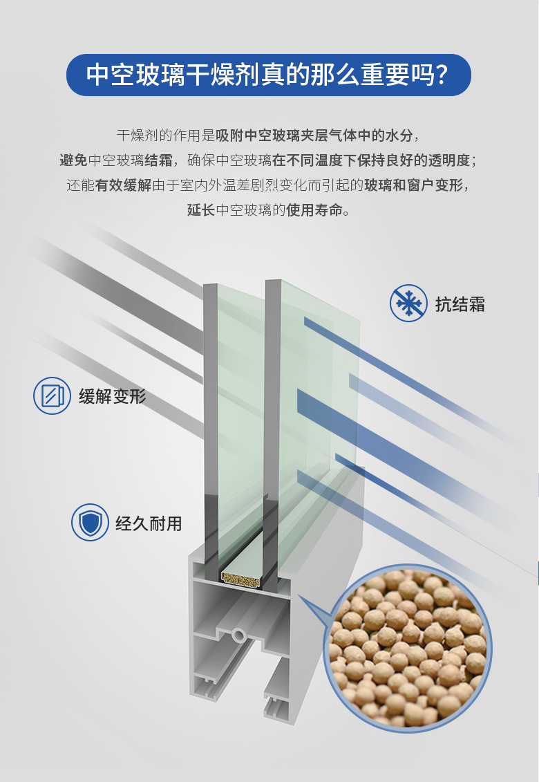 產(chǎn)品特性:中空玻璃干燥劑是一種以凹凸棒石粘土為主要原料,專門為中空玻璃研制的礦物干燥劑主要用于雙層玻璃夾層中空氣的干燥。
