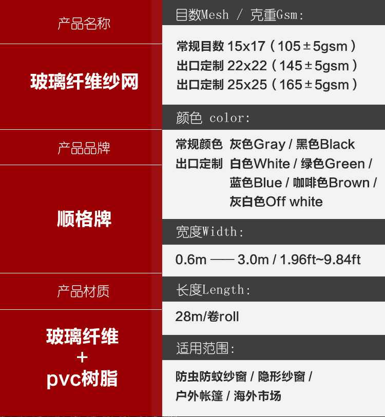 15x17玻璃纖維紗網(wǎng) Fiberglass Screen Mesh