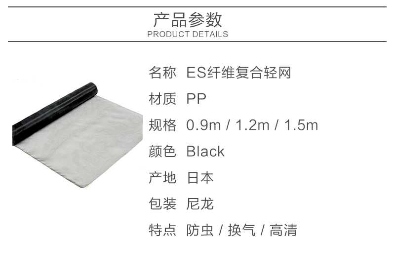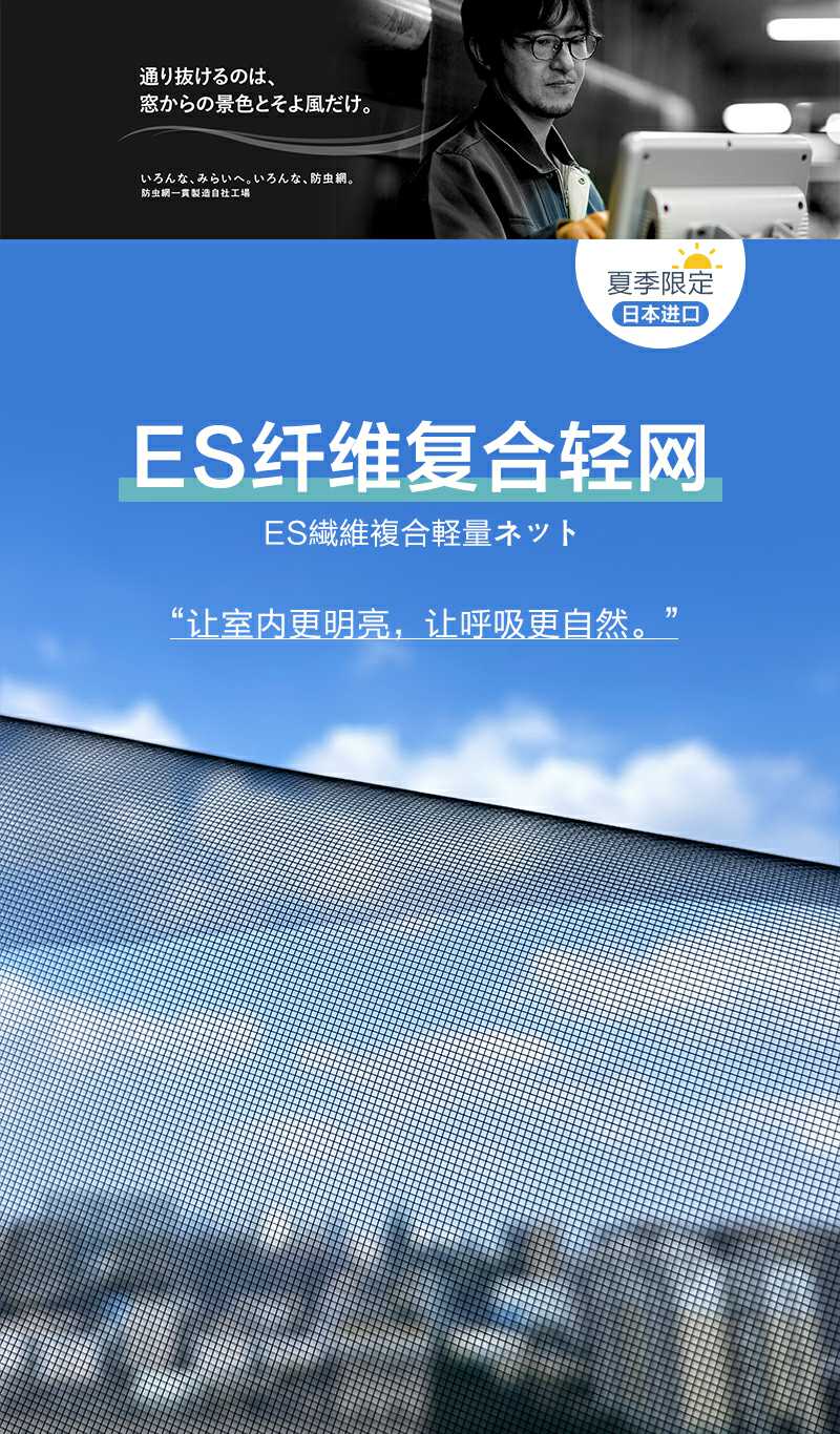 Product Features產品特點:ES纖維復合輕網從日本原裝進口,由一家具有30年生產經驗的織網廠制造,以嚴苛的品控標準和優異的品質在日本市場廣受歡迎。該產品專為回卷隱形紗窗設計,通過提升PP材料的摩擦力,增強了與壓條和膠水的結合效果,解決了傳統PP材料表面光滑易脫落的問題。其延展性極低,能有效避免因熱脹冷縮或經緯線松弛造成的網面變形。