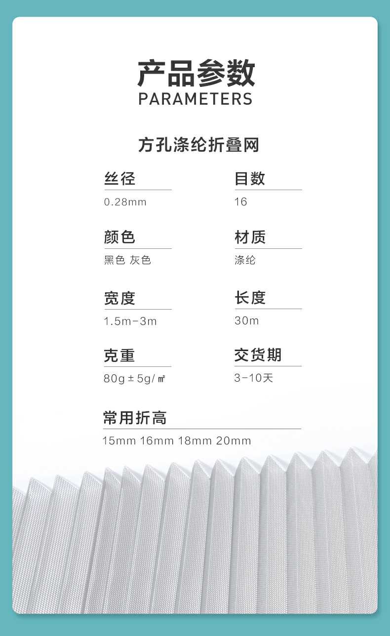 產品名稱:滌綸折疊紗網 Plisse polyester mesh